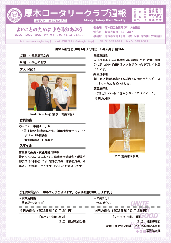 第3134回例会 幹事報告