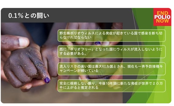 12月は疾病予防と治療月間です。今日の卓話はポリオに関して、今月のロータリーの友でポリオの啓発活動や根絶活動に関する記事が.ケイサイ”されております。本日は動画を見たいと思います。