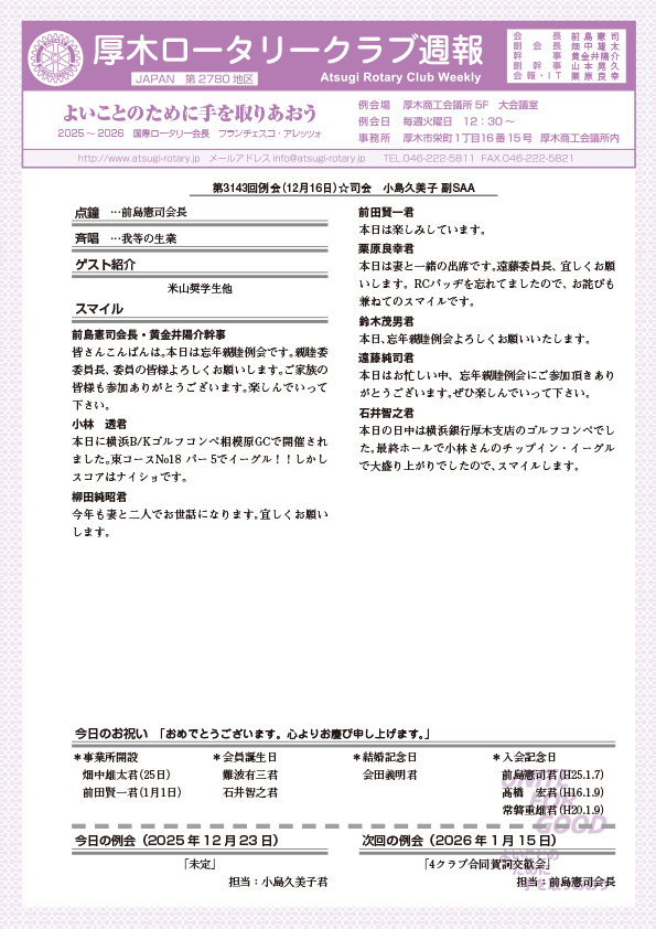 第3142回 会長幹事報告