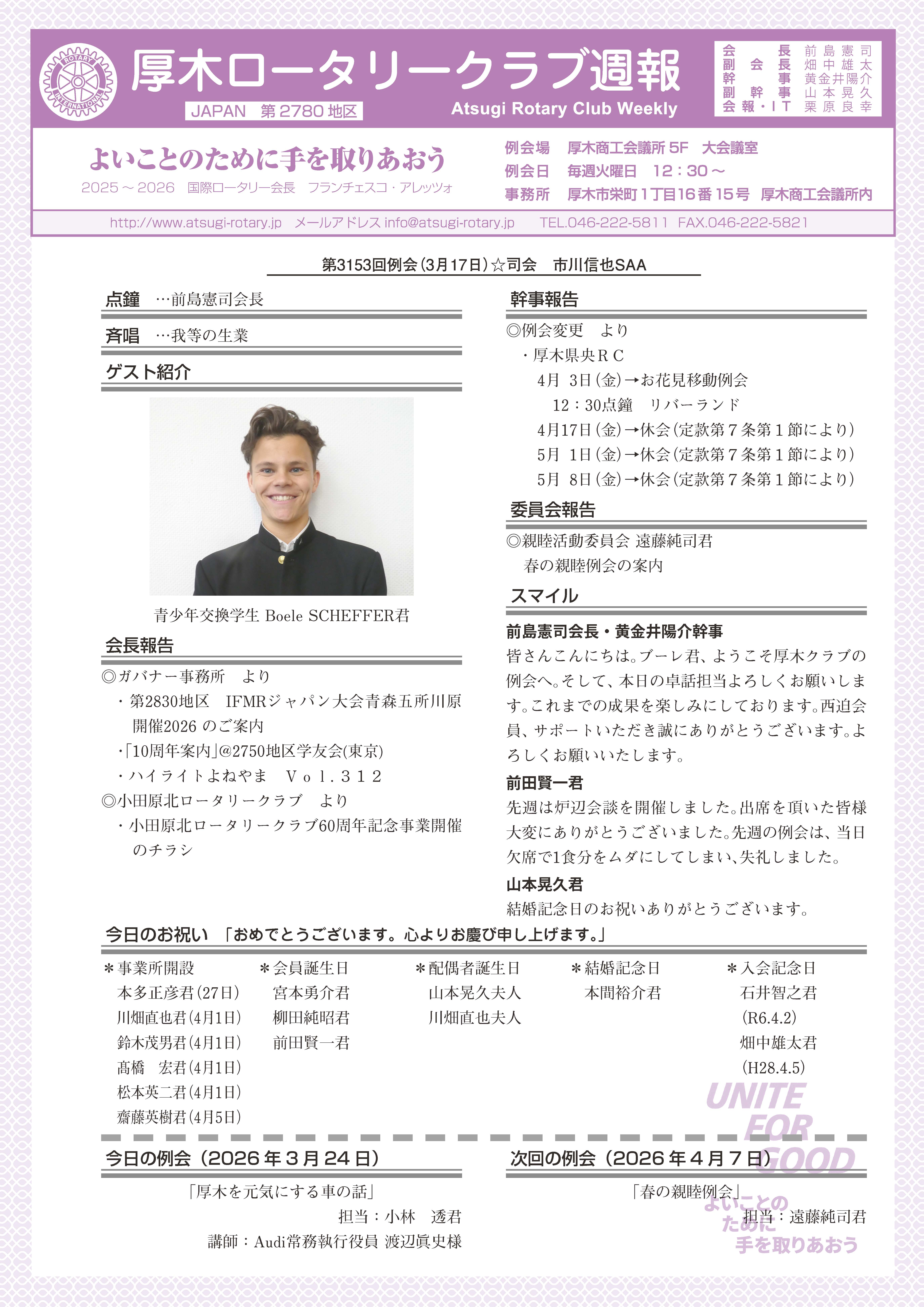 クラブ会報・IT委員会 | 2026年 3月 17日 火曜日 | | 週報 |
