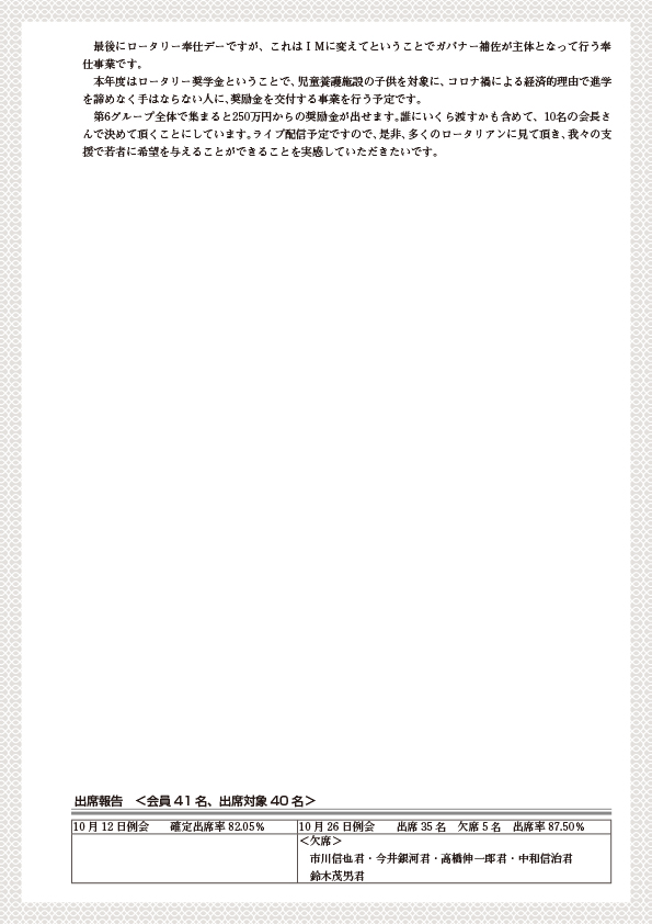 クラブ会報・IT委員会 2021年 10月 26日 火曜日 | | 週報