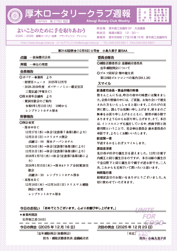 第3142回例会 会長報告